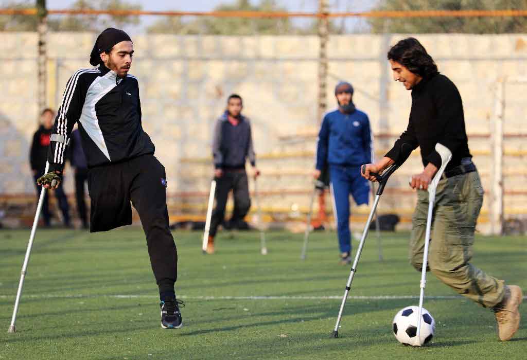 “Sometimes, the ball crosses right in front of me and I want to shoot it with my left leg, then I feel sorry for myself because my leg’s amputated,” says Salah Abu Ali, sitting on the sun-soaked edge of the football pitch.