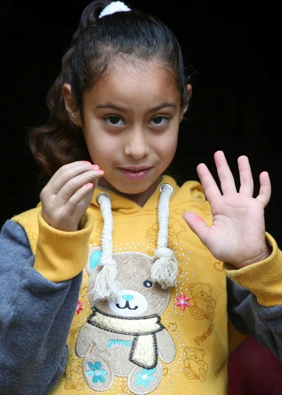 Palestinian refugee Asil Abu Ayada shows off her new prosthetic hand from the lab which produces limbs for between $20 and $50, a fraction of the cost of conventional devices.Photo: AFP