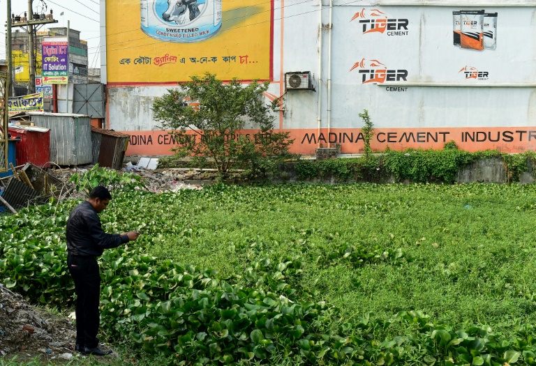 Whistleblower journalist Nazmul Huda was feted after the disaster for being the lone reporter to write and broadcast about the crumbling pillars at Rana Plaza before the collapse. The Rana Plaza ruins are now a vast hole filled with hyacinths. Photo: AFP