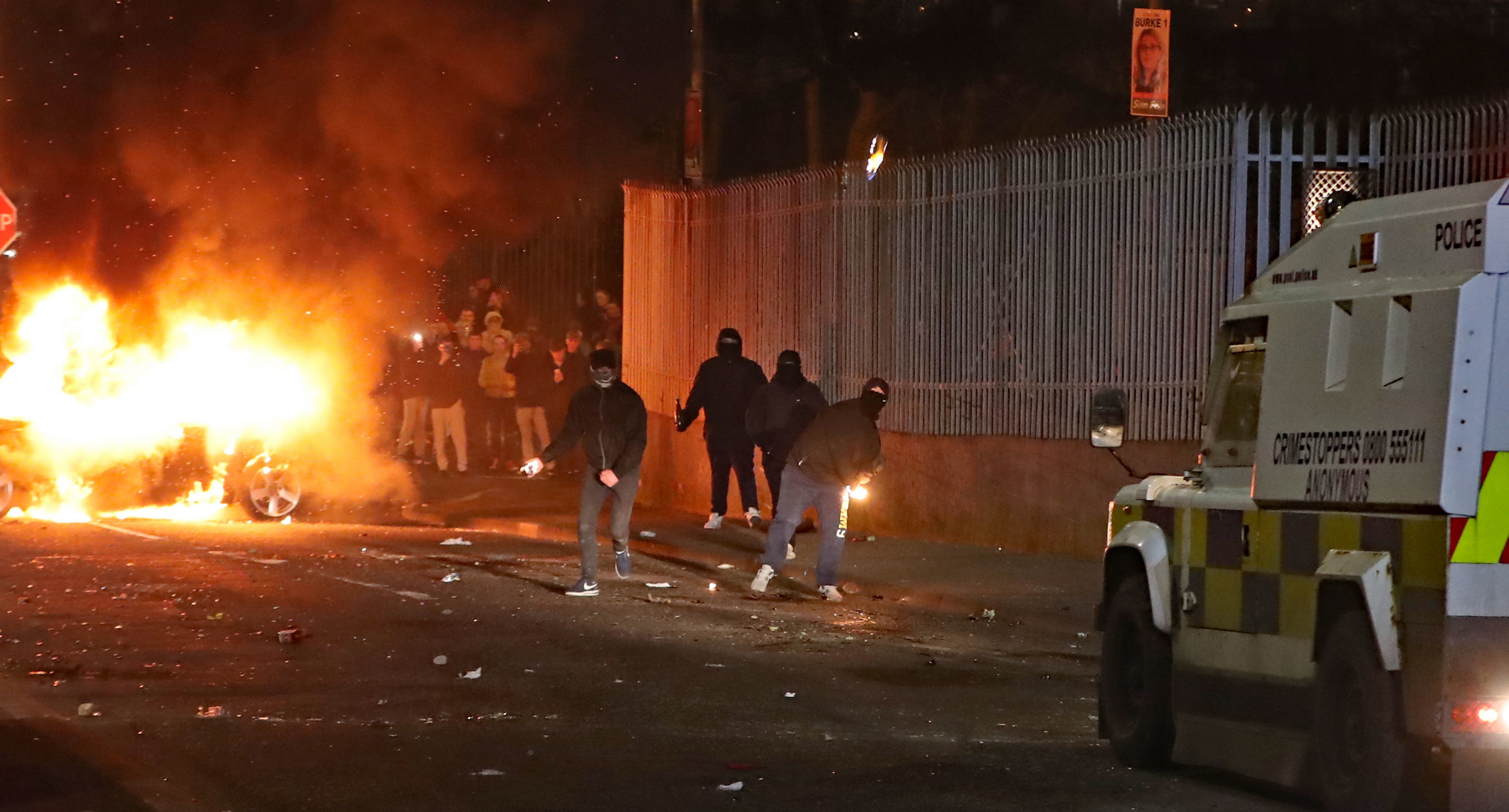 Videos posted on social media showed police vehicles being pelted with what O’Neill said were dozens of petrol bombs, bricks, bottles and fireworks.