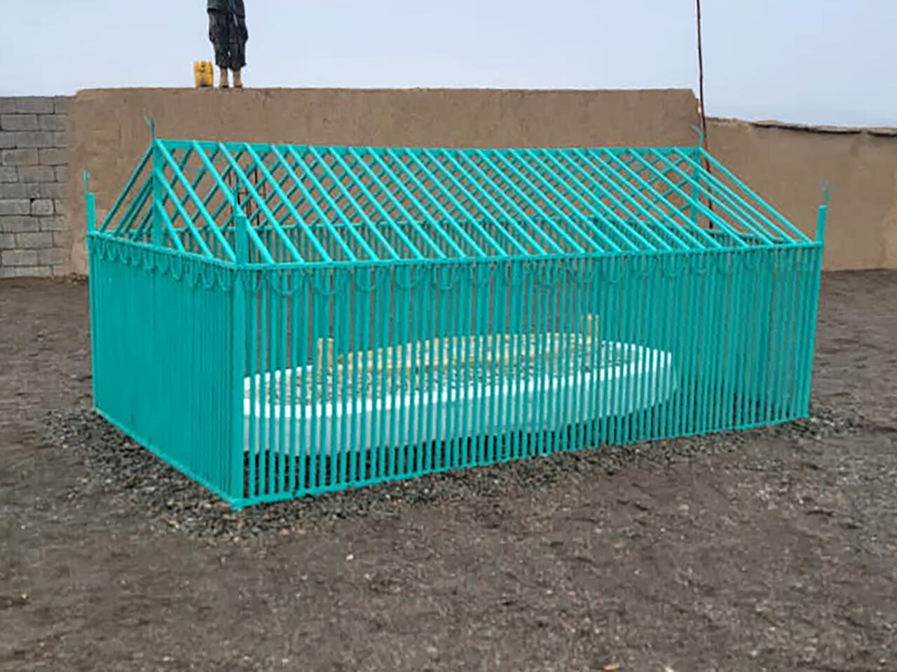Pictures released by officials showed Taliban leaders gathered around a simple white brick tomb, covered with what appears to be gravel and enclosed in a green metal cage.